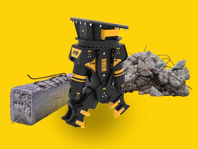 Installed on excavators, backhoe loaders and skid steer loaders, they are designed for primary and secondary crushing. They offer precision for fast and effective demolition work. The 360° continuous hydraulic rotation facilitates the positioning of the attachment, enhancing maneuverability and ease of use.